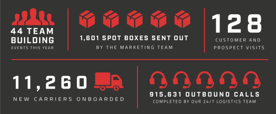 2019 was a monumental year for Spot. We celebrated our 10 year anniversary, welcomed our largest Account Management class of all time, completed the expansion of our Indianapolis office, and more! As we look to another year of growth in 2020, we wanted to take a moment to review our 2019 achievements and to thank our amazing employees, shippers, and carriers for their unwavering support.