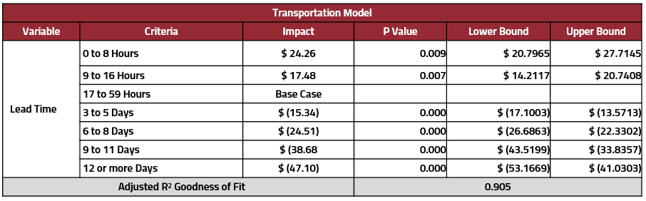 Seen above in Figure 5, when carriers are provided with more lead time, the more likely you are to see a higher cost savings. On the flip side, if there is very little lead time given, it will ultimately lead to significant cost penalties.
