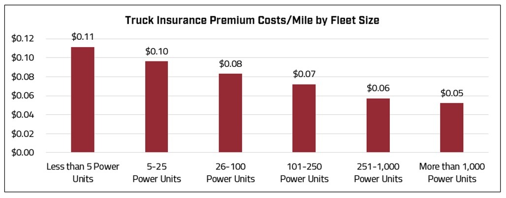 Both internal and external factors impact a carrier’s insurance rates and costs, which is often independent of their crash history and safety ratings. Premiums account for $7.5 CPM, based on strategies that carriers employ to balance insurance costs with operational risks. Larger fleets often self-insure or utilize high deductibles while smaller fleets will also attempt to increase per-truck deductibles.